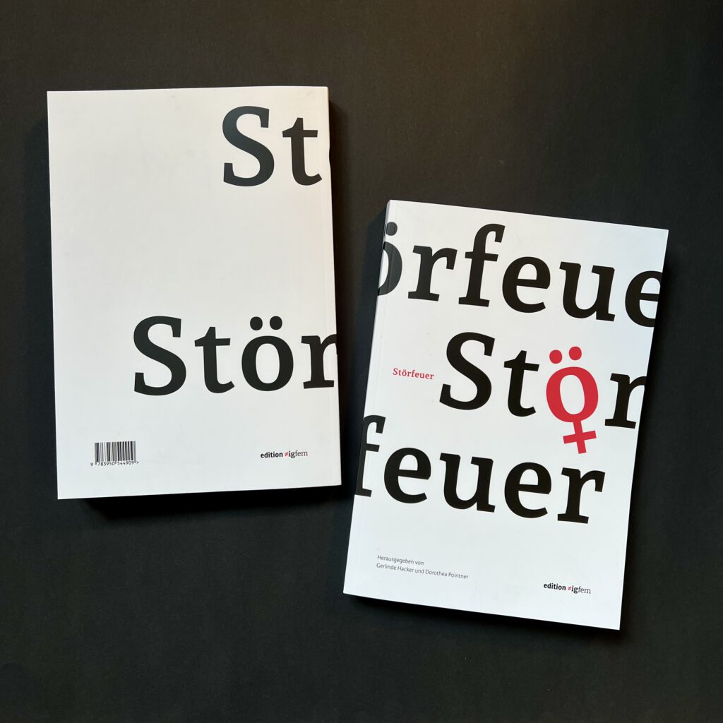Für die IG feministische Autorinnen entstand in einem co-kreativen Prozess ein umfassendes Editorial Design für das Buch Störfeuer. Von Gestaltungsraster, Farbkonzept, Typografie, Satz und Layout bis hin zum Cover wurde das gesamte Buch neu entwickelt. Das Cover macht Feminismus und Irritation sichtbar, das Innere ist klar und reduziert gestaltet und gibt den Texten der Autorinnen Raum. Verwendet wurden Schriften von Typografinnen – ein Werk, bei dem Texte, Design und Schriftgestaltung konsequent von Frauen geschaffen wurden.